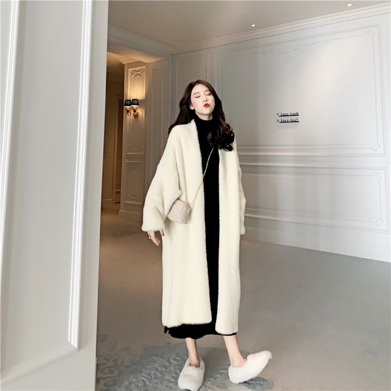 長款加厚蝙蝠袖寬松外套女秋冬2018新款加厚保暖氣質百搭開衫大衣