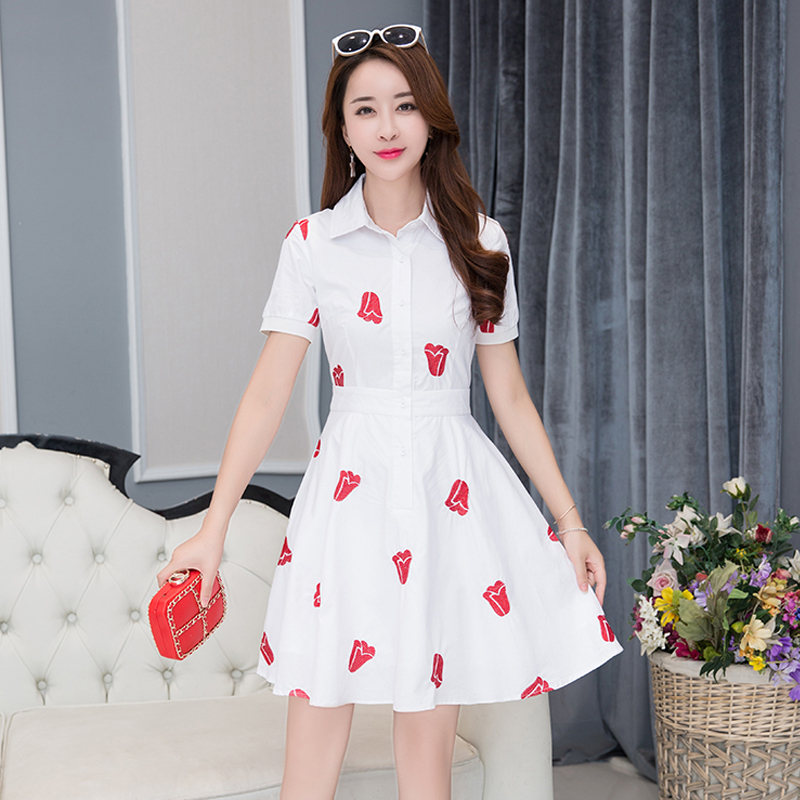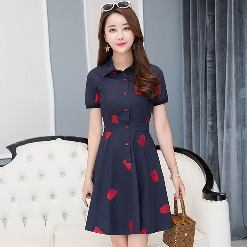 / 襯衫連衣裙女夏季新款女修身收腰中裙氣質a字裙