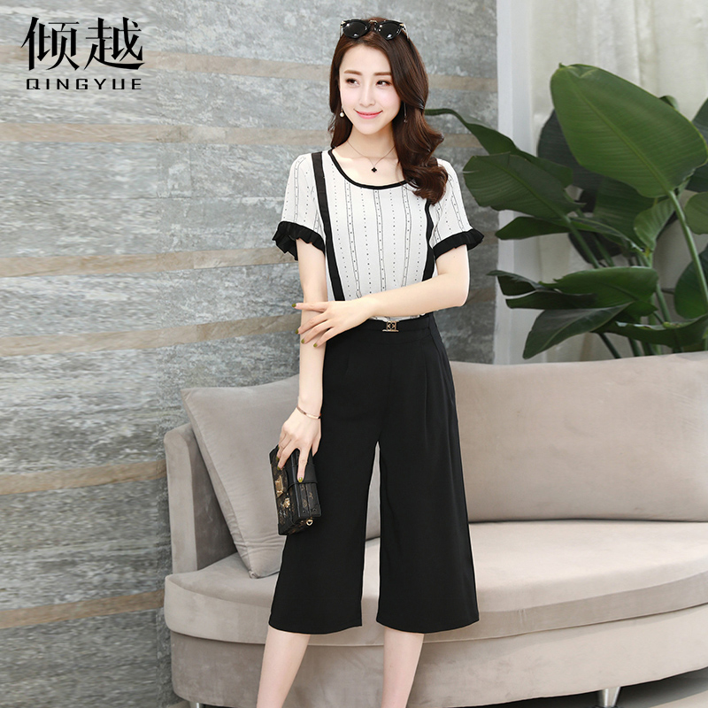 / 傾越2017夏季新款女裝氣質七分闊腿褲套裝小香風時尚休閑兩件套潮