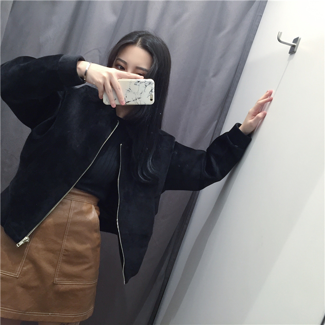 / 2018韓國新款復古百搭氣質時尚chic絲絨光澤棒球服長袖拉鏈外套女