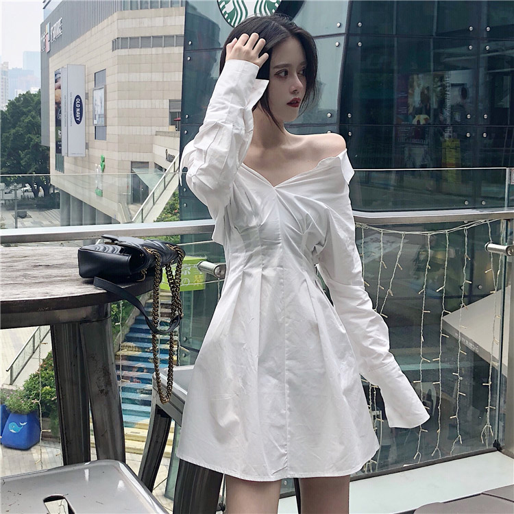 2018時尚甜美chic港味長袖襯衫裙女氣質秋裝新款收腰顯瘦連衣裙潮