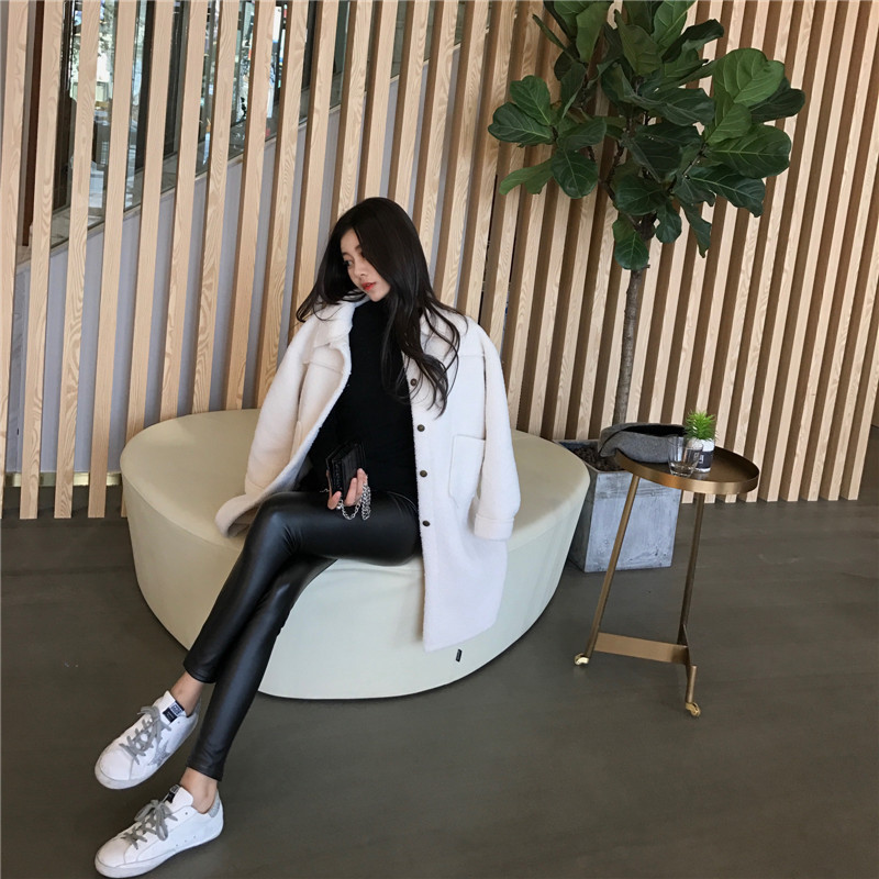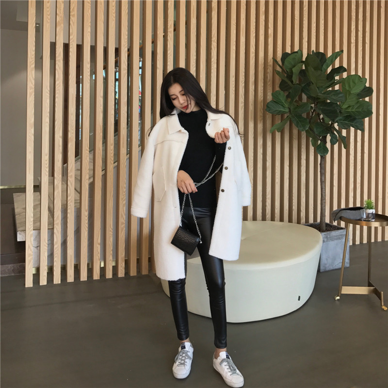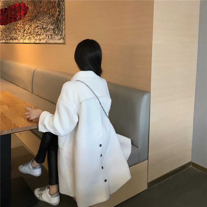 chic港味2018秋冬新款保暖過膝毛呢外套女仿羊羔毛中長款大衣女潮
