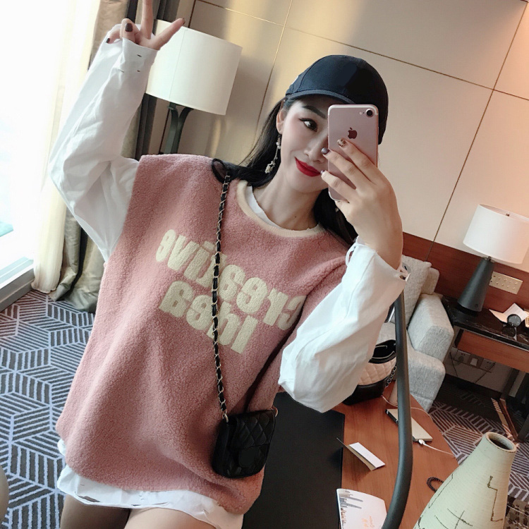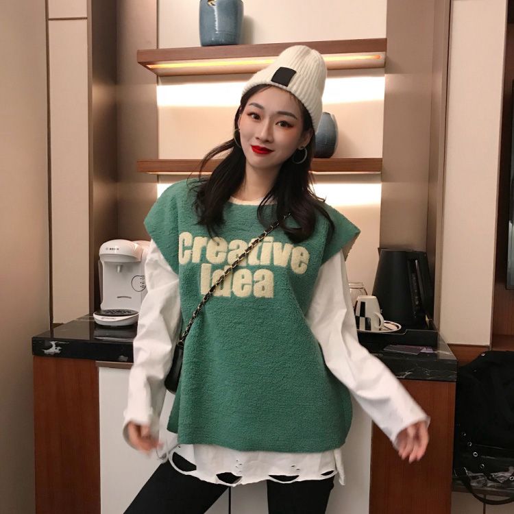2018秋冬新款韓版時尚套裝寬松馬甲長袖破洞設計感T恤女兩件套潮