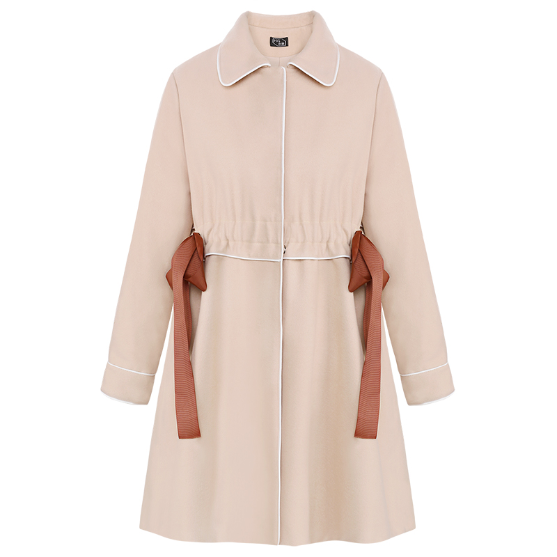 MG小象中長款呢子外套女秋冬新款學生寬松2018流行收腰毛呢大衣潮