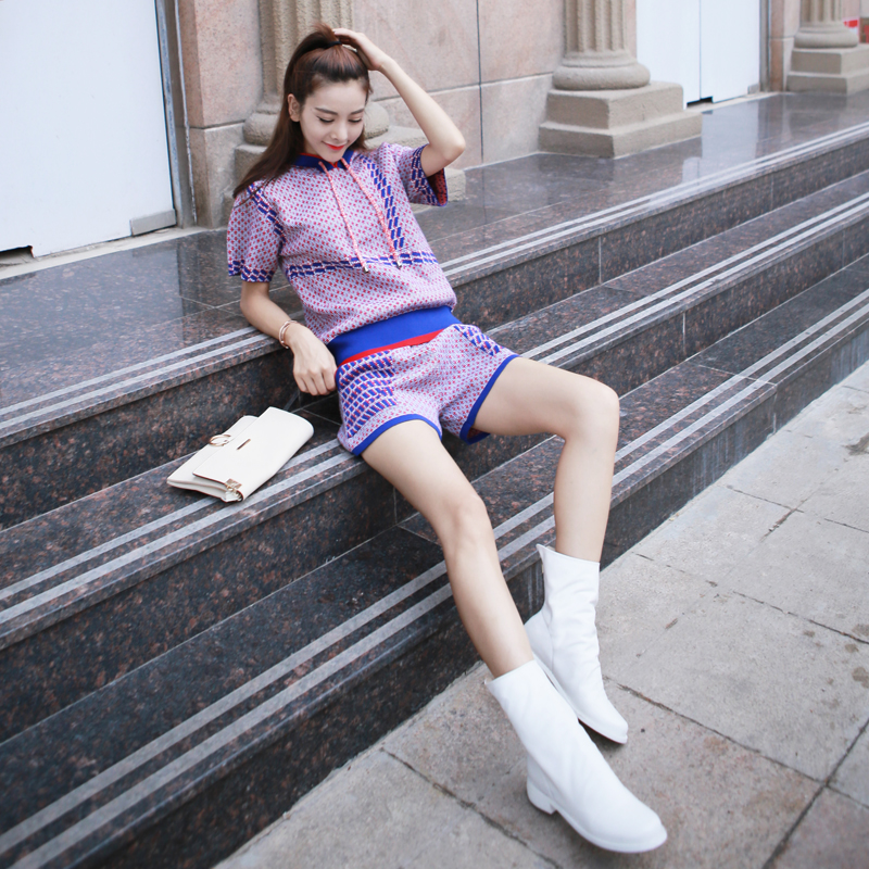 / 新款2018氣質運動短袖套頭短褲熱褲連帽休閑時尚針織兩件套裝女裝