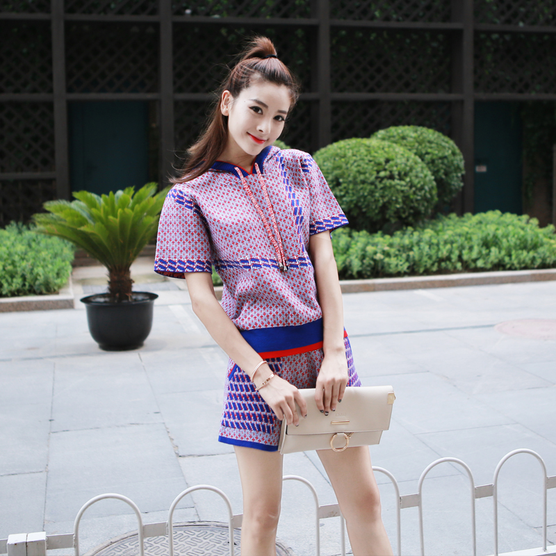 新款2018氣質運動短袖套頭短褲熱褲連帽休閑時尚針織兩件套裝女裝