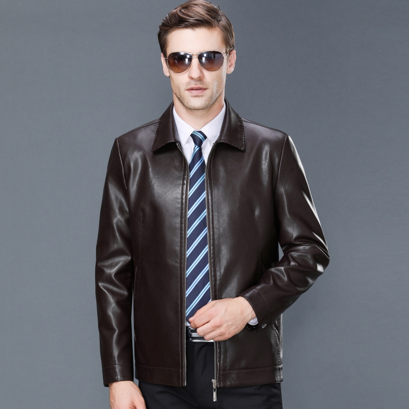 / 2018新款秋冬品牌中年男士綿羊皮夾克休閑男裝真皮皮衣翻領外套