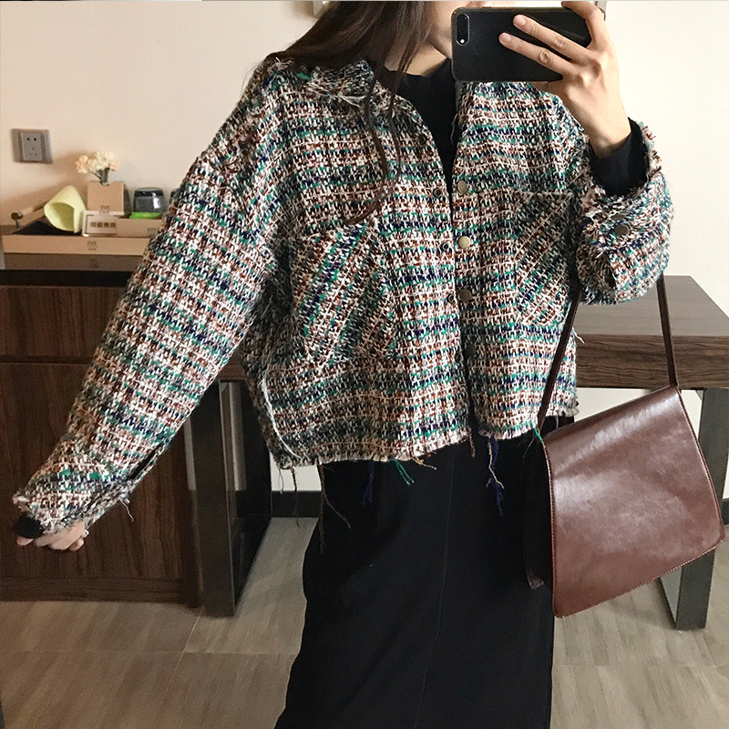/ 小香風秋冬新款粗花呢長袖開衫時尚韓版顯瘦復古chic氣質寬松外套
