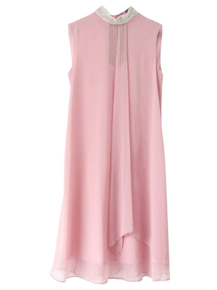 S秀韓版名媛氣質2018夏季新款流蘇波浪無袖連衣裙純色不規則裙子