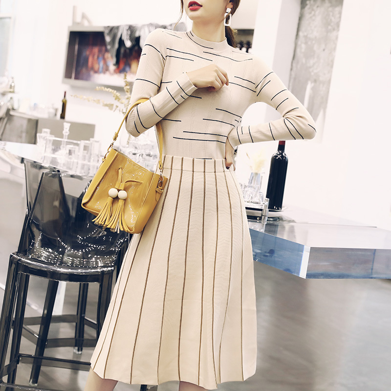 / 春秋季針織毛衣女裙子兩件套連衣裙2018新款修身韓版修身時尚套裝
