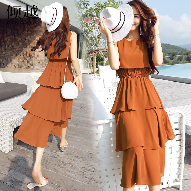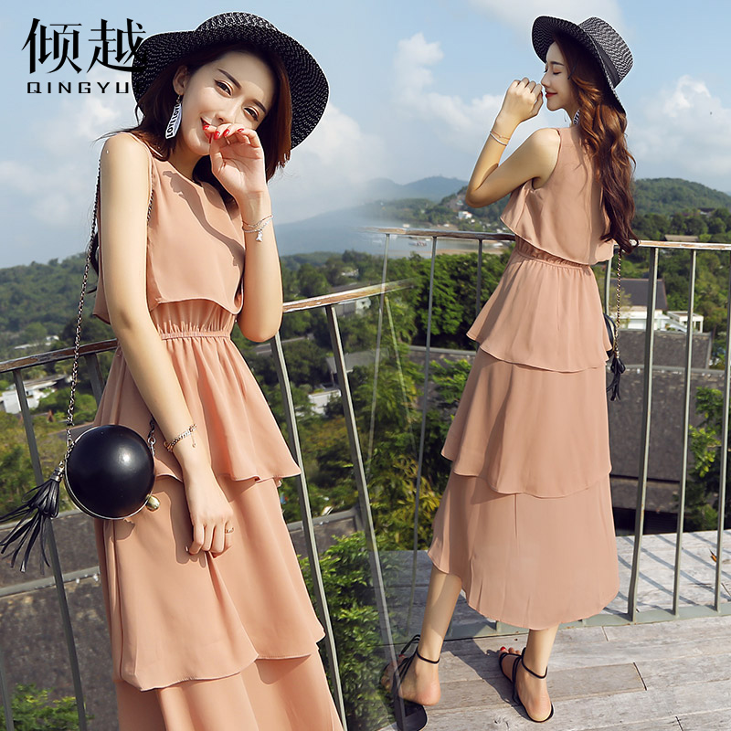 / 雪紡連衣裙2017新款女夏無袖顯瘦蛋糕蓬蓬裙長款小仙女氣質淑女潮