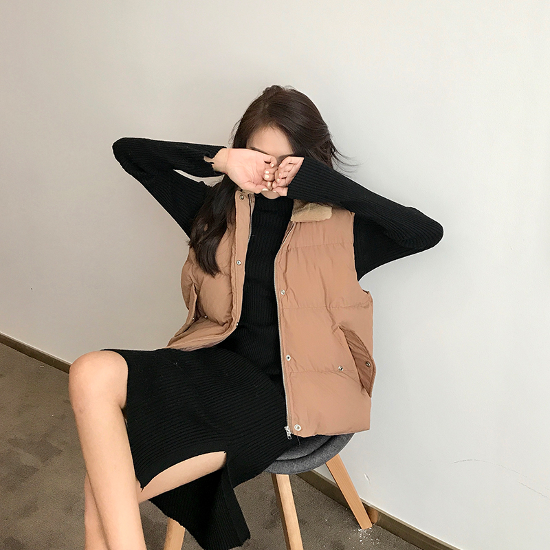 2018秋冬新款韓版棉服加厚保暖時尚百搭顯瘦外套純色馬甲背心女裝