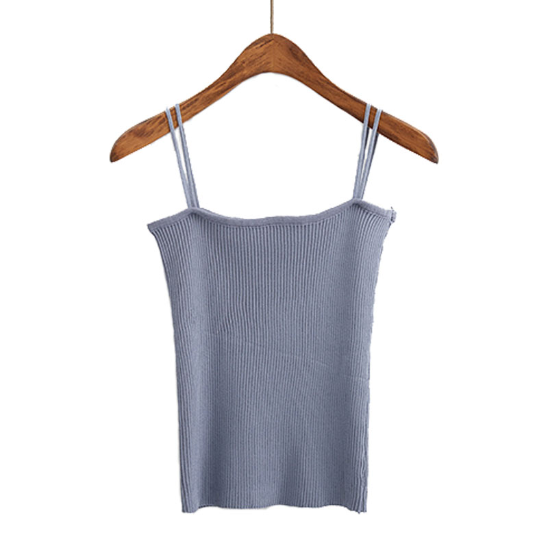 秋裝女裝韓版修身顯瘦雙吊帶彈力針織衫小背心外穿短款打底衫上衣