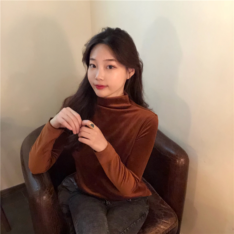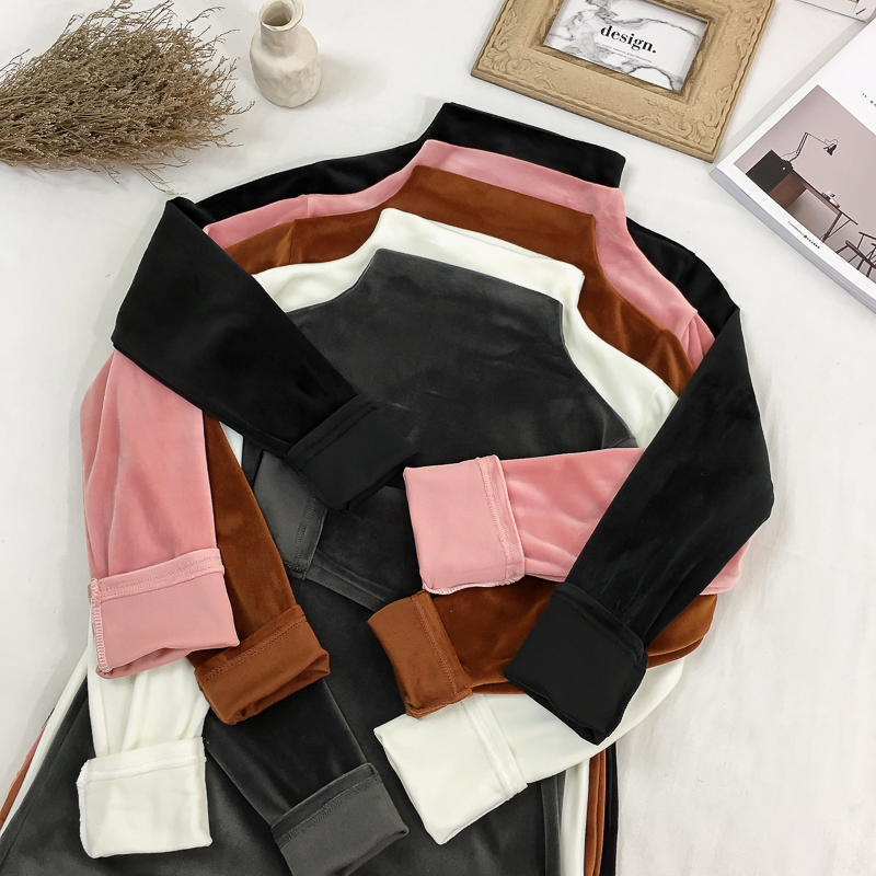 新款時尚秋冬韓版絲絨純色高領長袖T恤加絨加厚保暖打底衫上衣女